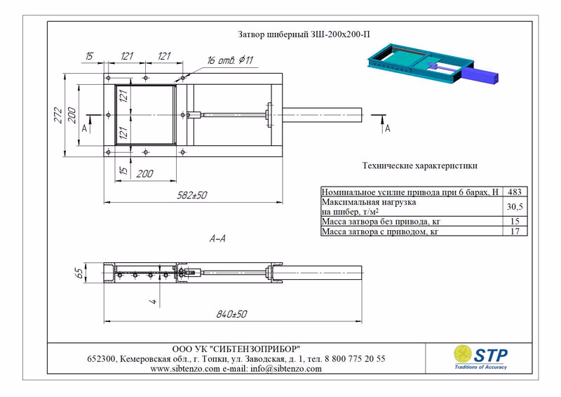 Наименование Габариты проходного окна шибера, мм Состав затвора шиберного ЗШ Масса Максимальная нагрузка на шибер, т/м2